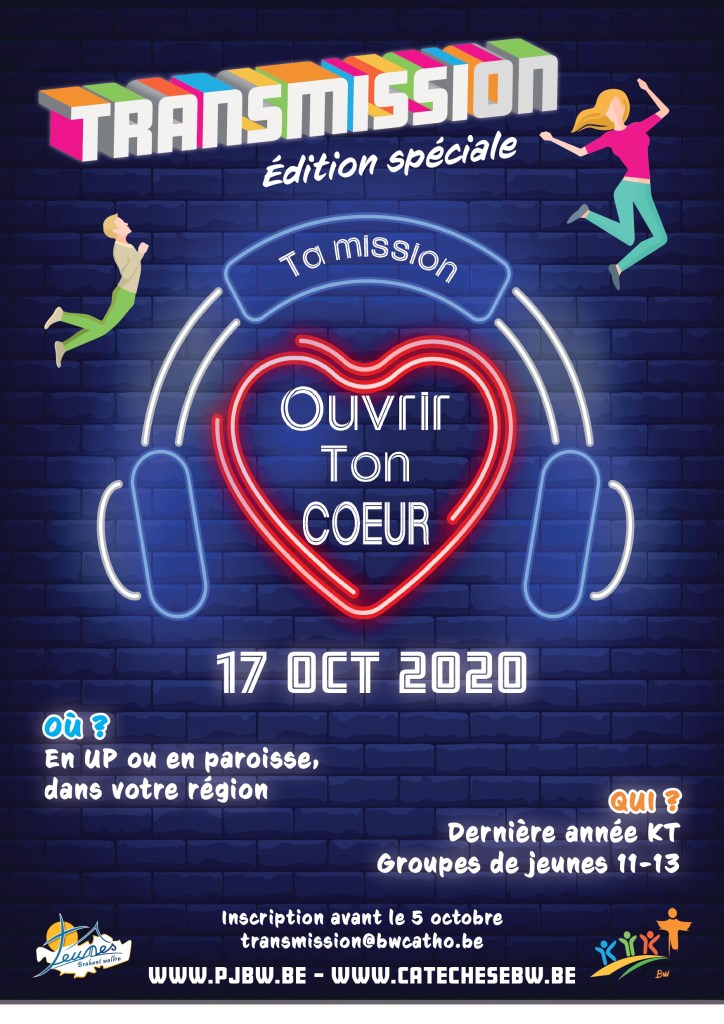 Le Service de la catéchèse et la Pastorale des Jeunes du Brabant wallon invitent les équipes en dernière année de catéchèse et les groupes 11-13 à Transmission – édition spéciale !