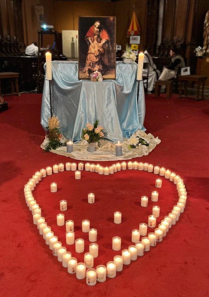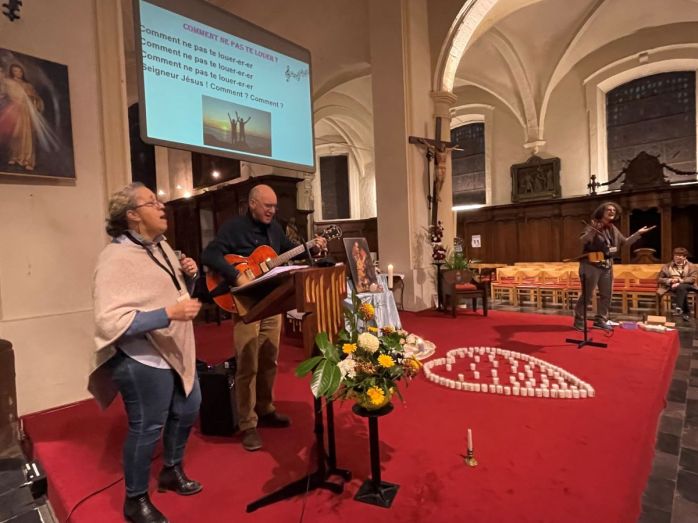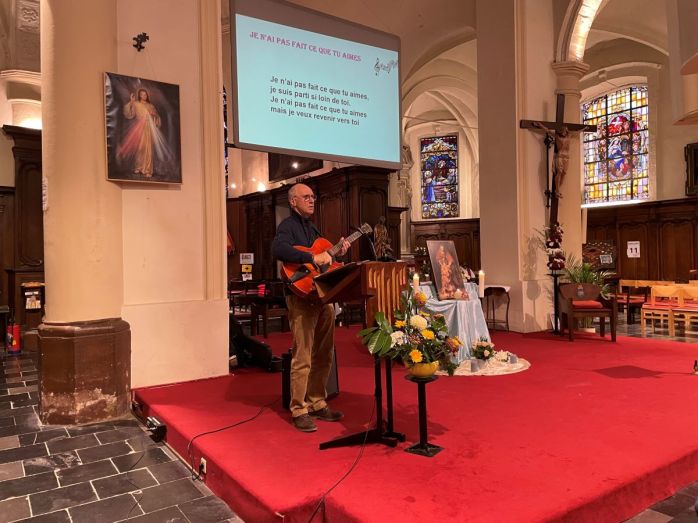 Un moment animé en petits groupes par les animateurs a permis d’approfondir 3 temps : Dieu m’aime ; rupture de l’amour envers Dieu-Père et les autres ; Dieu-Père m’ouvre les bras. Ces 3 étapes alternaient réflexions, chants et prières.