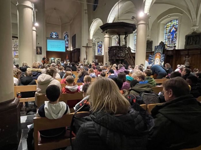 Après un goûter tous ensemble, nous nous sommes rassemblés dans la basilique Notre-Dame pour nous préparer à recevoir le sacrement de Réconciliation. Une douzaine de prêtres étaient présents pour offrir ce sacrement aux enfants et adultes qui le souhaitaient. Une animatrice a par ailleurs rassemblé les enfants qui n’avaient pas encore reçu le baptême et leur a proposé un temps de partage et d’adoration.