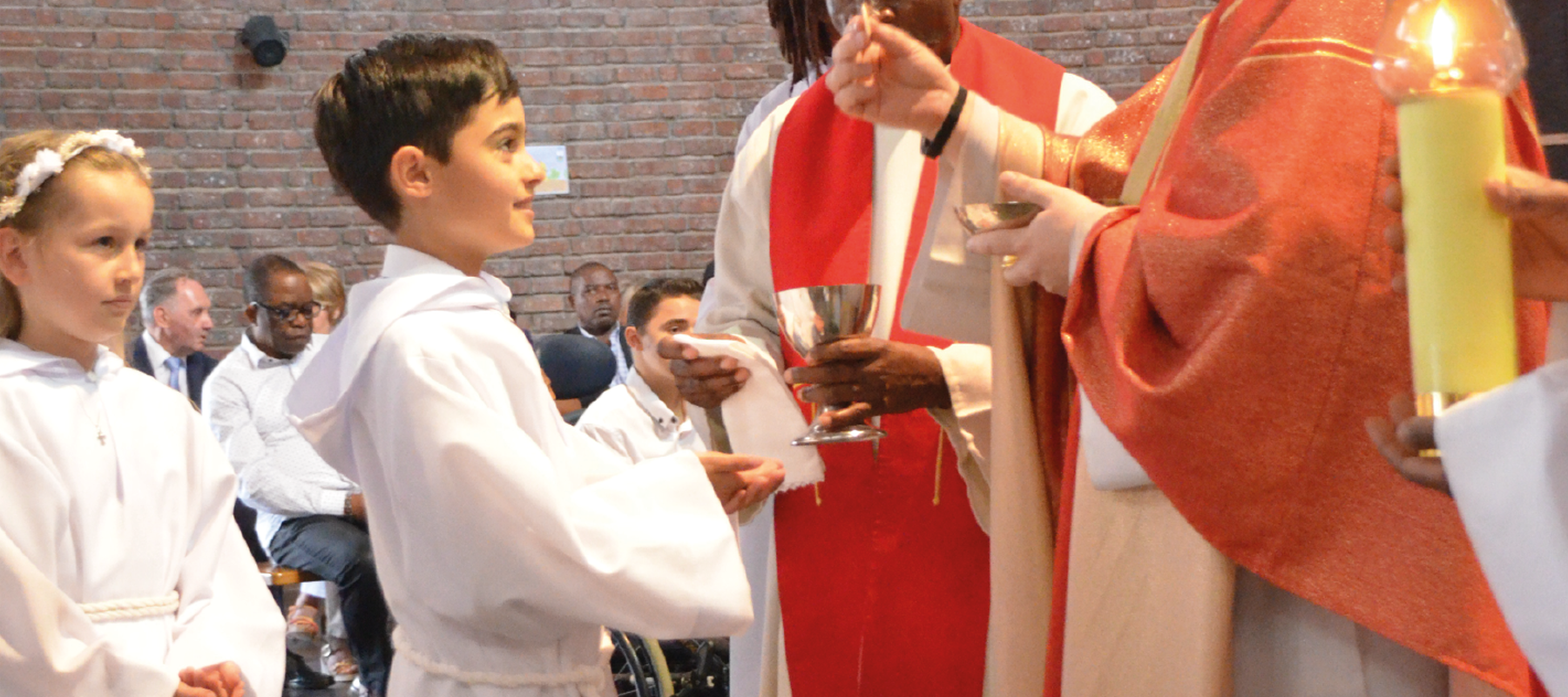 L’Eucharistie couronne les sacrements de l’Initiation Chrétienne (baptême et confirmation), elle est « la source et le sommet de toute la vie chrétienne » (Concile Vatican II, Constitution sur l’Église n° 11). En catéchèse les enfants découvrent l’eucharistie comme le sommet de leur cheminement à la suite de Jésus et sont appelés à en faire la source de toute leur vie chrétienne. Ainsi, la première communion n’a d’autre vocation que d’être suivie d’autres communions, ces moments d’union avec Jésus qui nous préparent à participer au plus important des repas : « Heureux celui qui participera au repas dans le royaume de Dieu ! » (Luc 14,15).